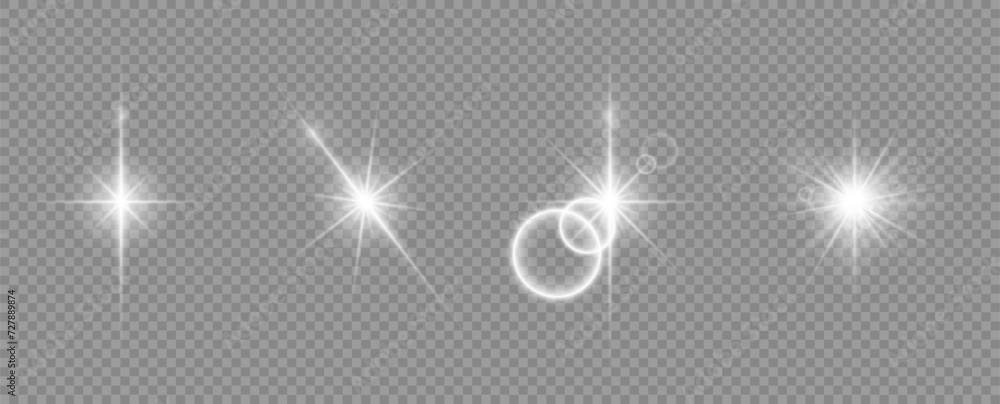 Tablou pe pânză A set of glowing white stars on a gray transparent background