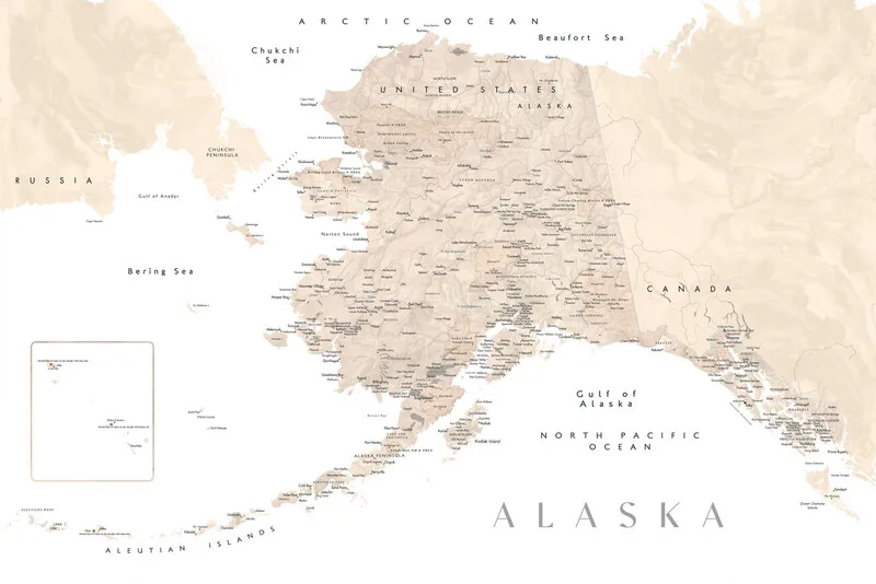 Tablou pe pânză Detailed map of Alaska in neutral watercolor