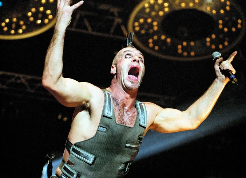 NETHERLANDS - DECEMBER 03: Photo of RAMMSTEIN; 03-12-2001/RAMMSTEIN/HEINEKEN MUSIC HALL/A'DAM (Photo by Peter Pakvis/Redferns)