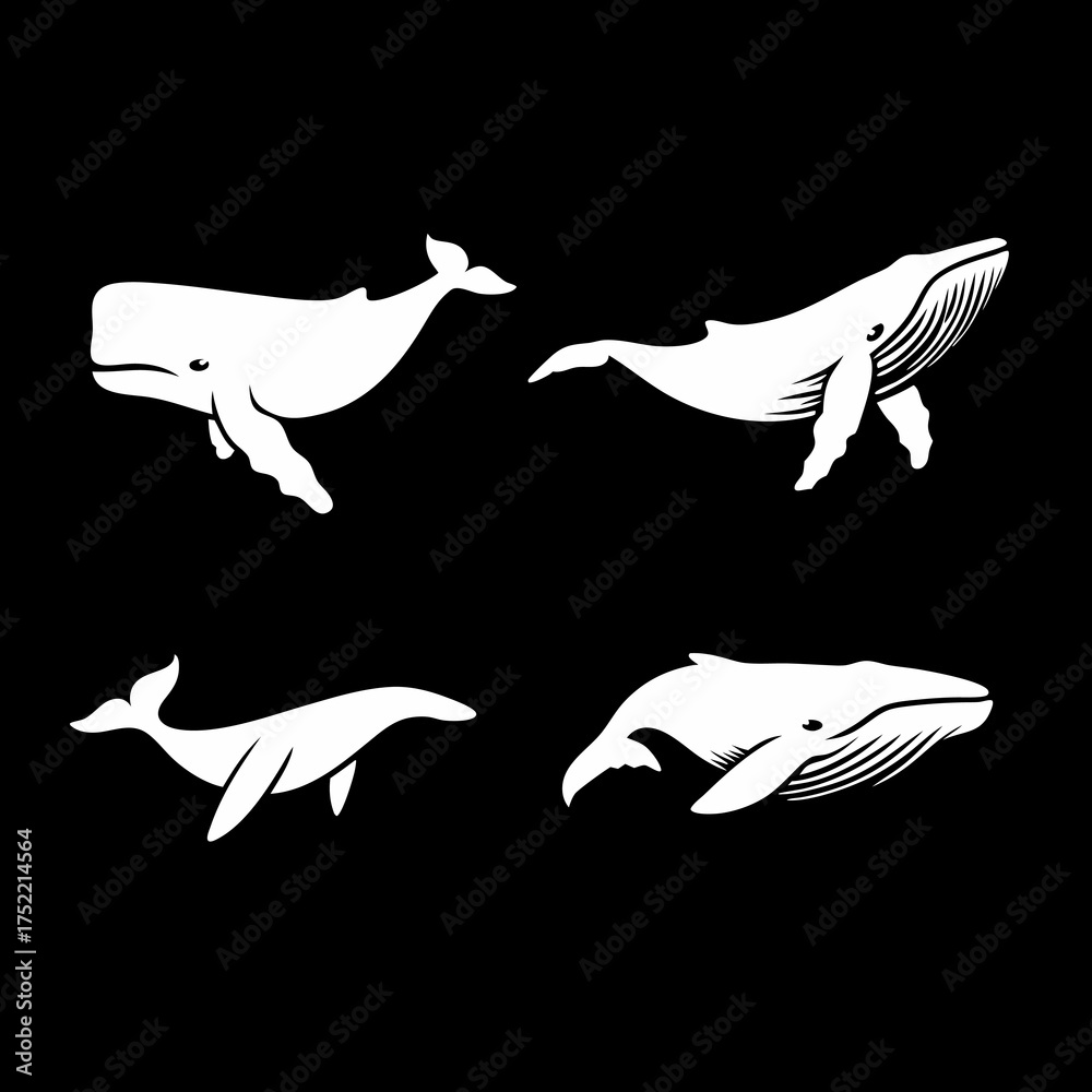 Autocolant Whales in Black Illustrations Depicting Marine Mammals
