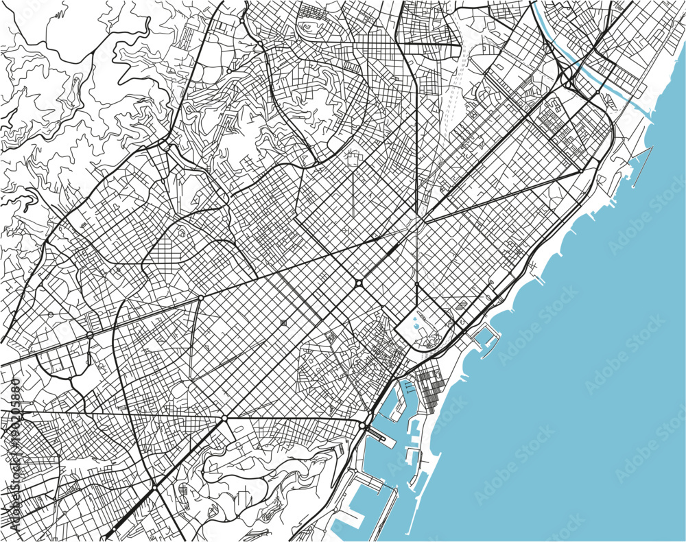 Autocolant Black and white vector city map of Barcelona with well organized separated layers