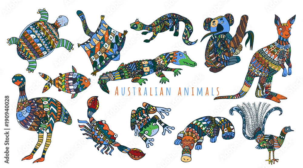 Autocolant Colorful tribal set of australian animals