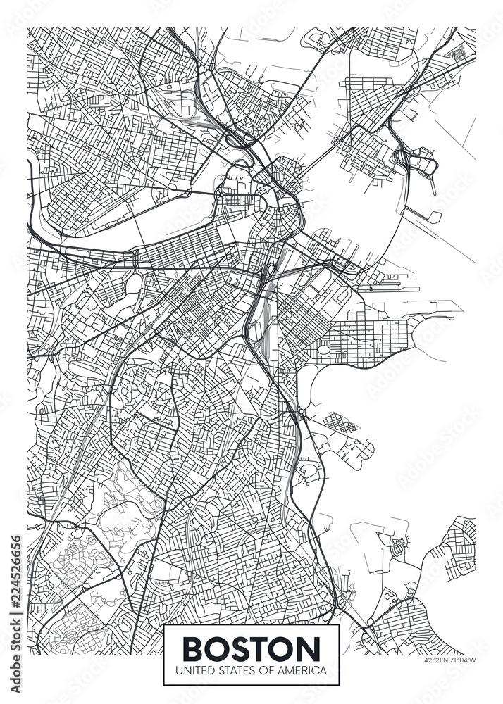 Autocolant City map Boston, travel vector poster design