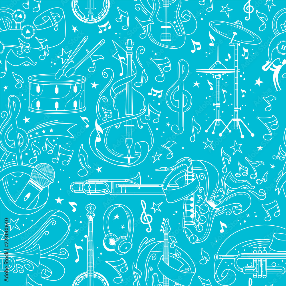 Autocolant Orchestra instruments hand drawn outline seamless pattern