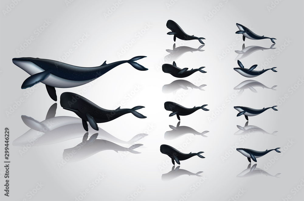 Autocolant Vector and illustration graphic digital design,Blue whale isolated on white bac