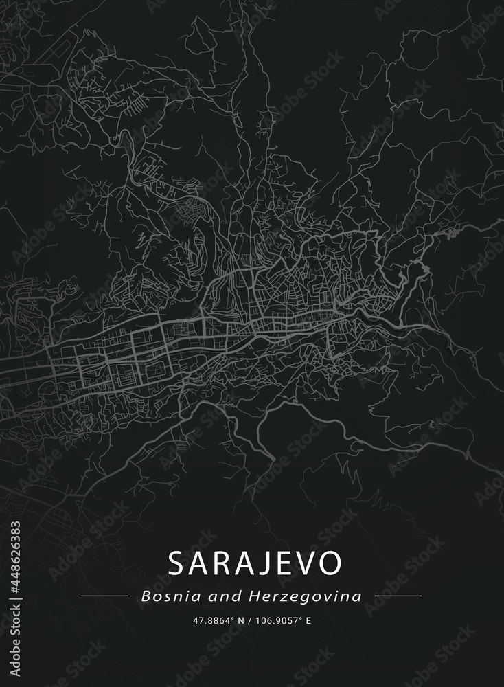 Autocolant Map of Sarajevo, Bosnia and Herzegovina