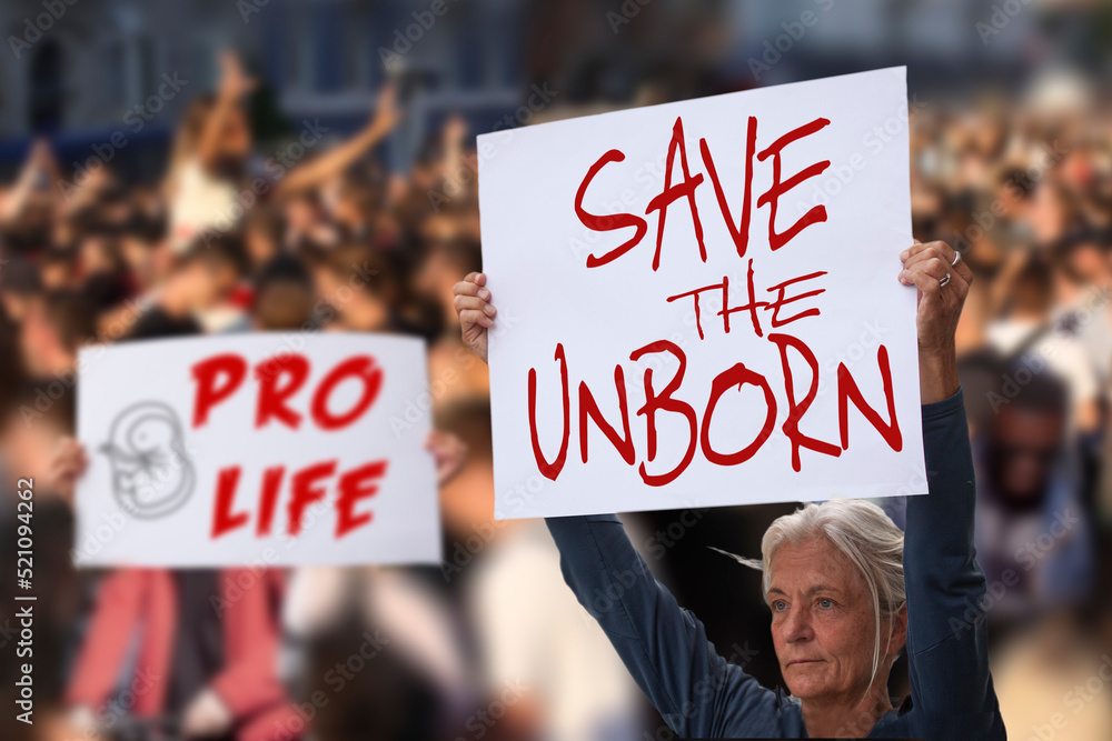 Autocolant Protesters holding signs Save the unborn, Pro Life