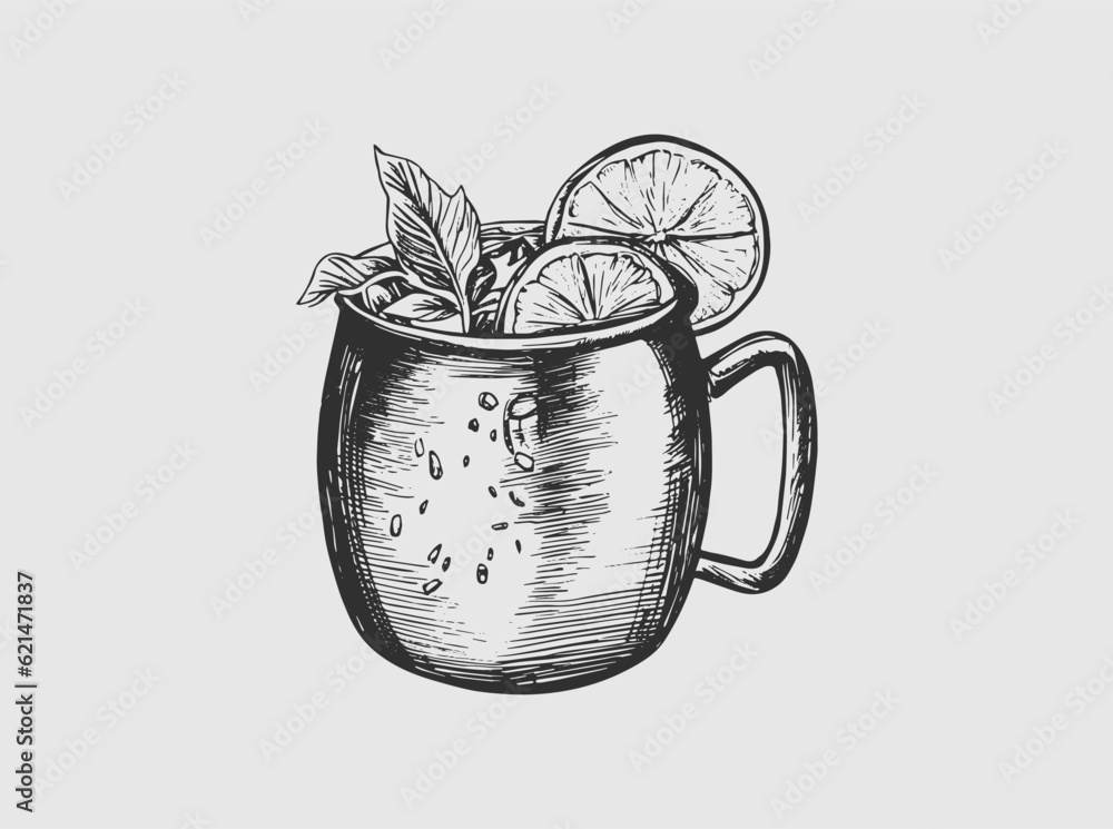 Autocolant Moscow Mule Cocktail Hand Drawn Drink Vector Illustration