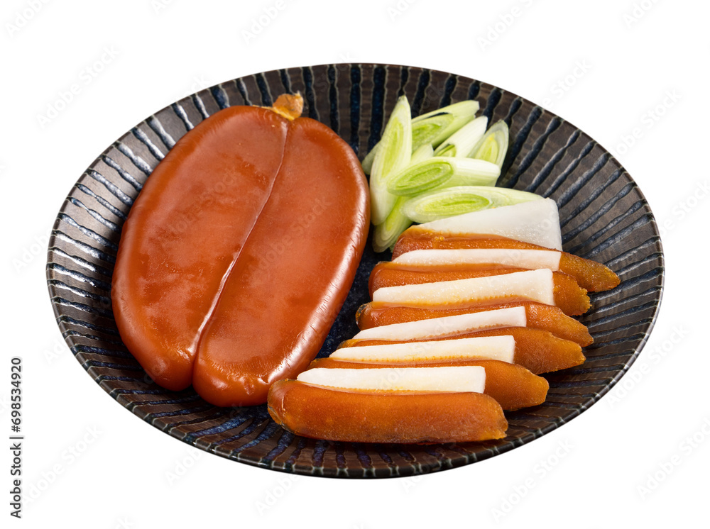 Autocolant Delicious fresh mullet roe isolated on white background for Chinese lunar new year