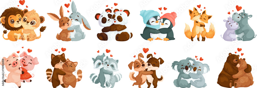 Autocolant Set of cute, loving hugging animals