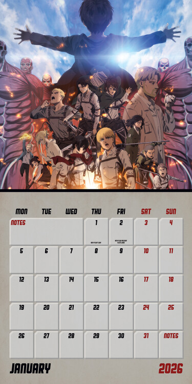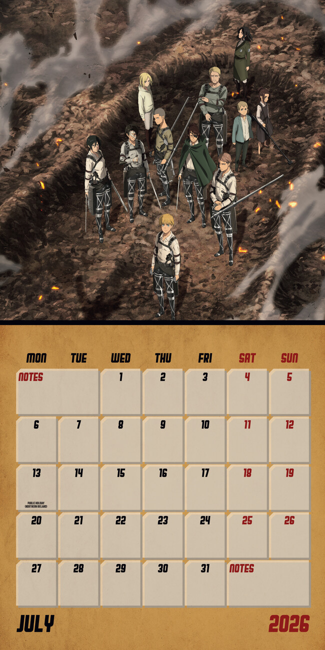 • Calendarul Attack On Titan poate fi agățat pe orice perete