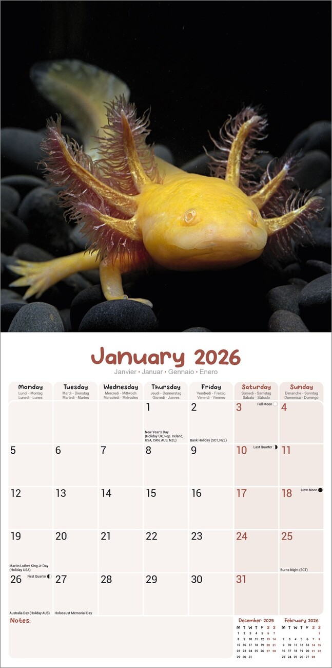 Calendar 2026 Axolotls