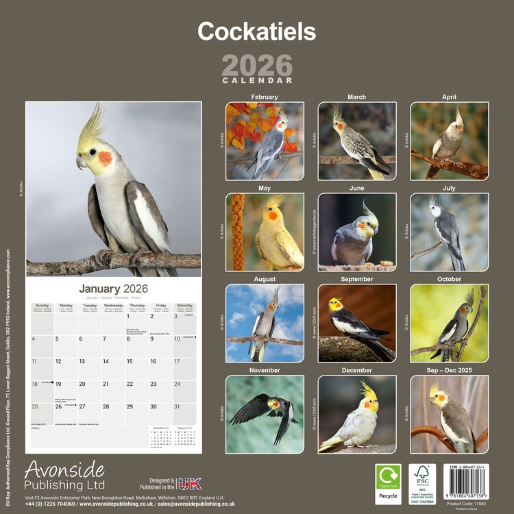 • Calendarul Cockatiels poate fi agățat pe orice perete