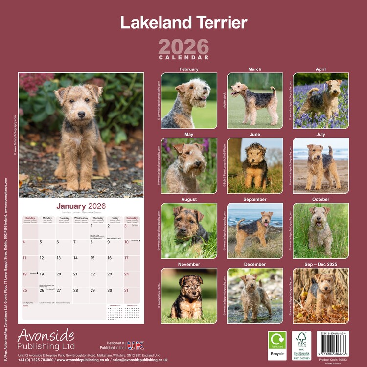 • Calendarul Lakeland Terrier poate fi agățat pe orice perete