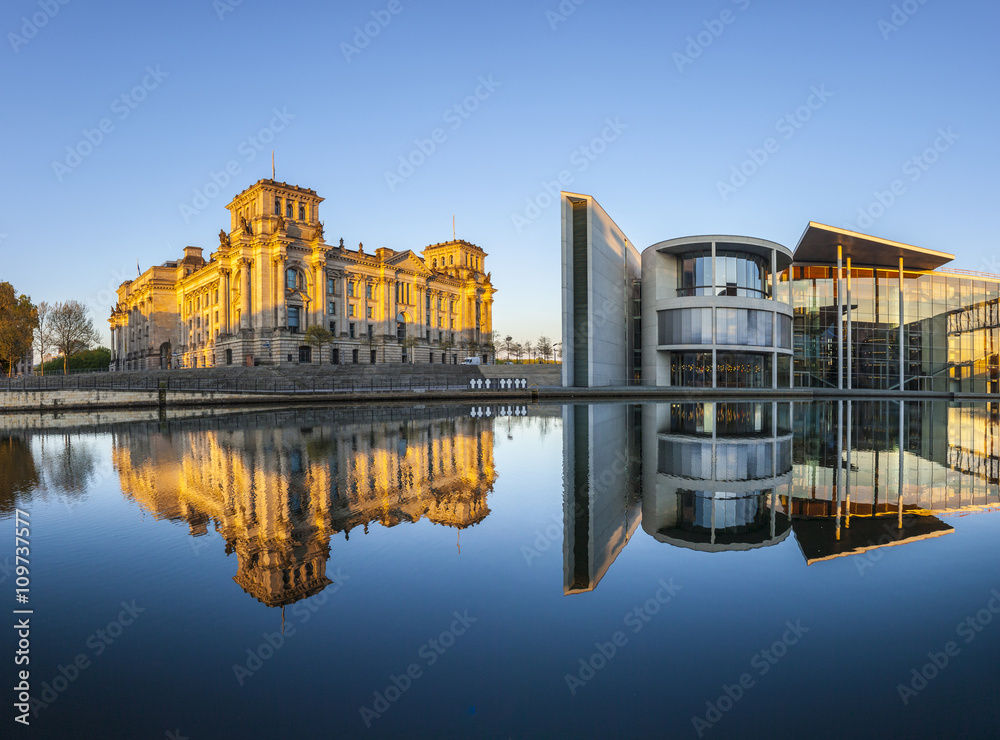 Fototapet goverment buildings with reflection in Spree, Berlin