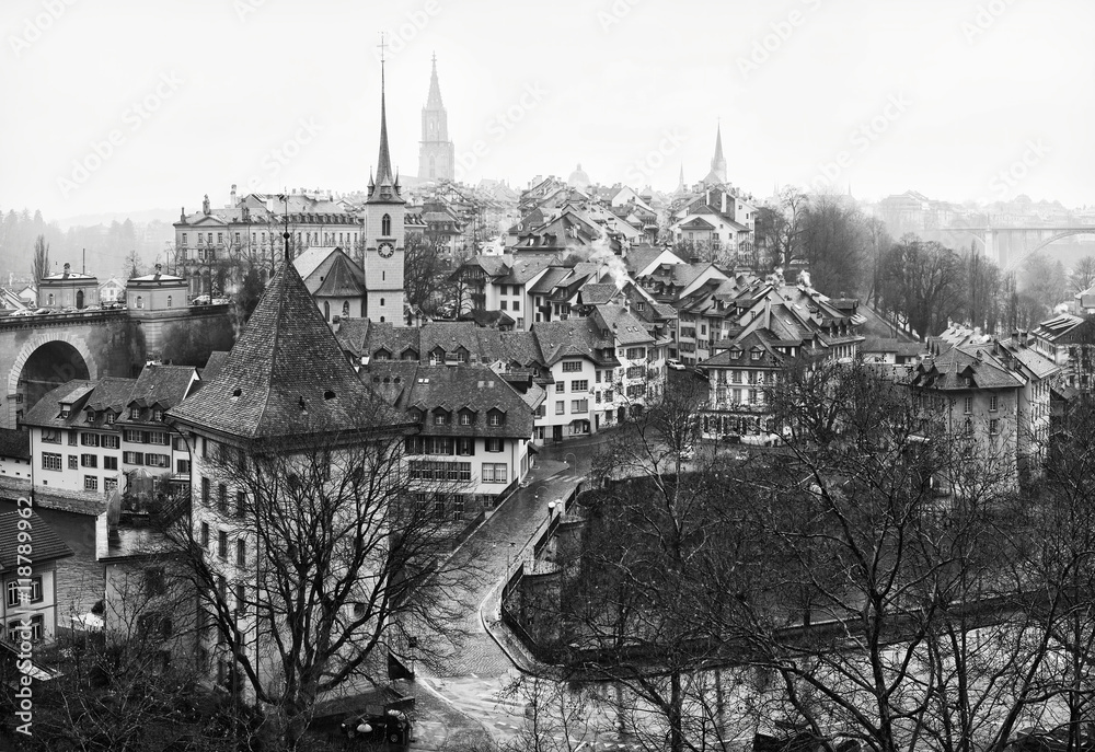 Fototapet View on Old City of Bern in the rain, Switzerland