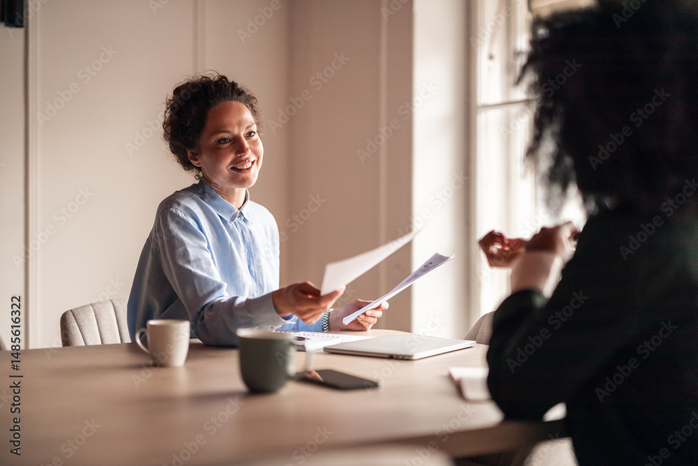Fototapet Professional Job Interview Between Two Women in Modern Office Setting