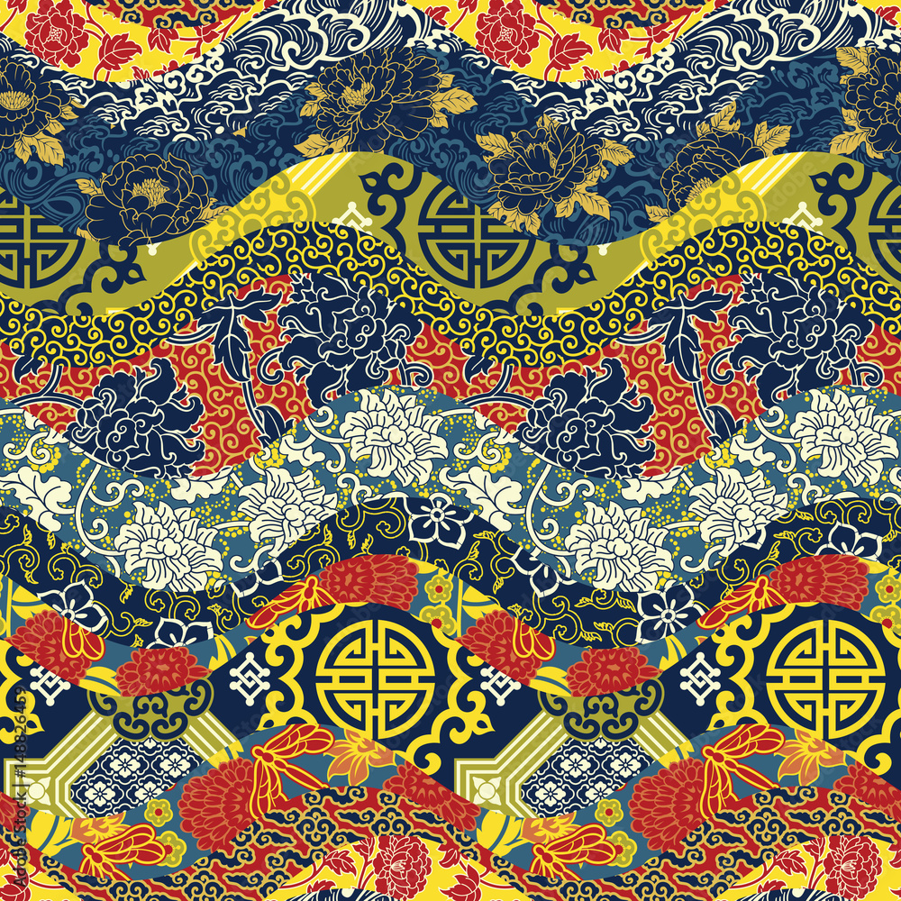 Fototapet Chinese style waves patchwork seamless pattern