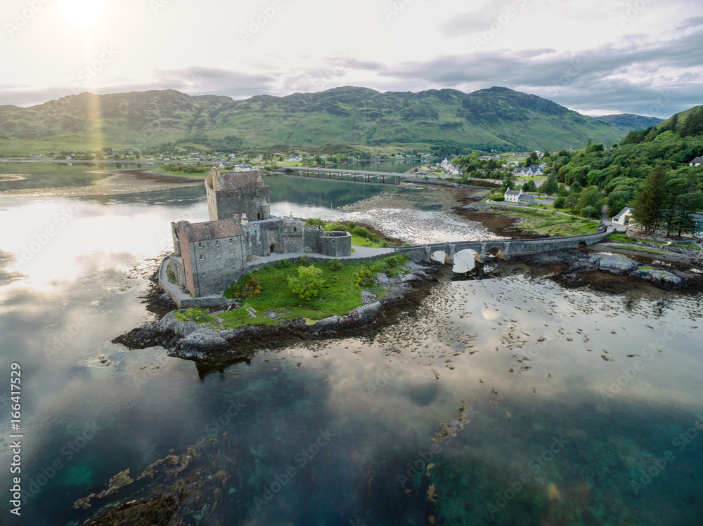 Fototapet Aerial view of the historic Eilean Donan Castle by Dornie