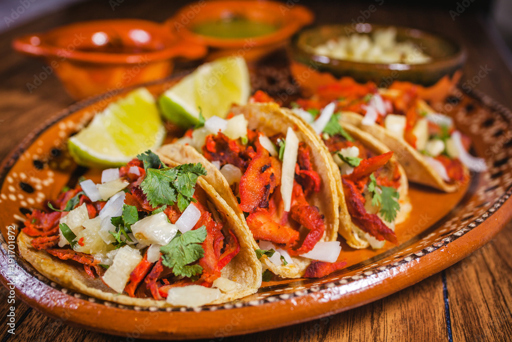 Fototapet tacos al pastor and lemon mexican food in mexico city