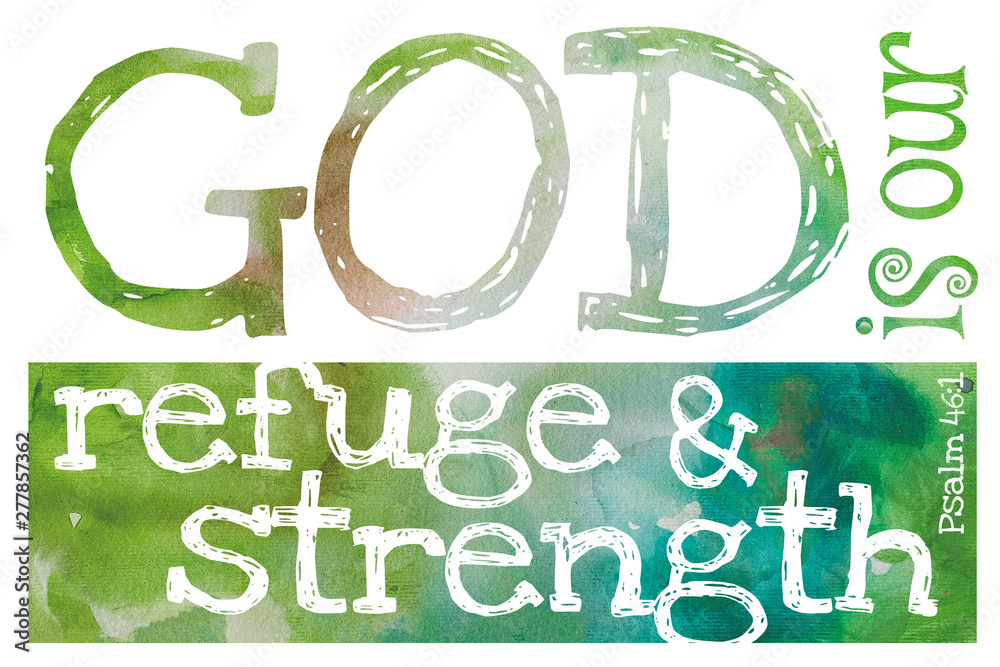 Fototapet God is our refuge and strength (Psalm 46:1) - Poster with Bible text quotation