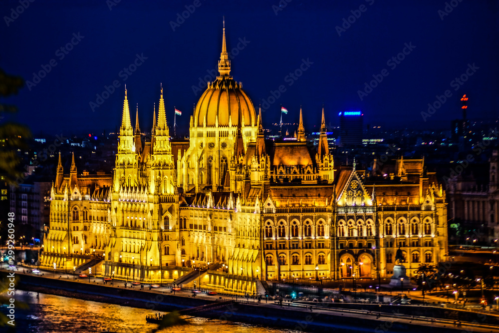 Fototapet ハンガリー国会議事堂(ブダペスト・漁夫の砦から)
