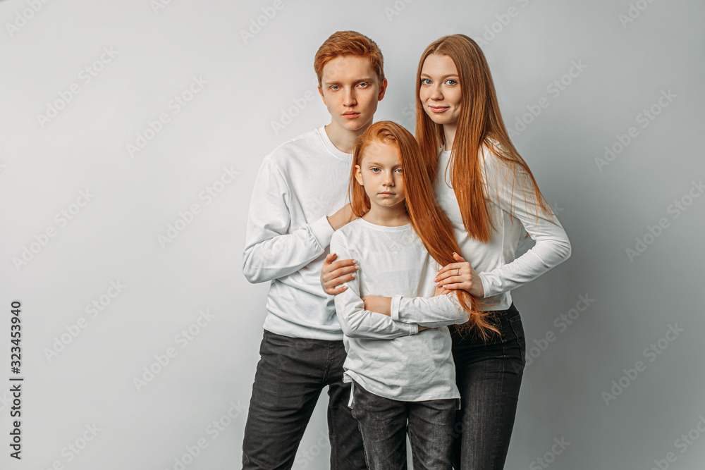 Fototapet portrait of beautiful caucasian people with unusual hair colour, redhaired people posing at camera isolated over white background