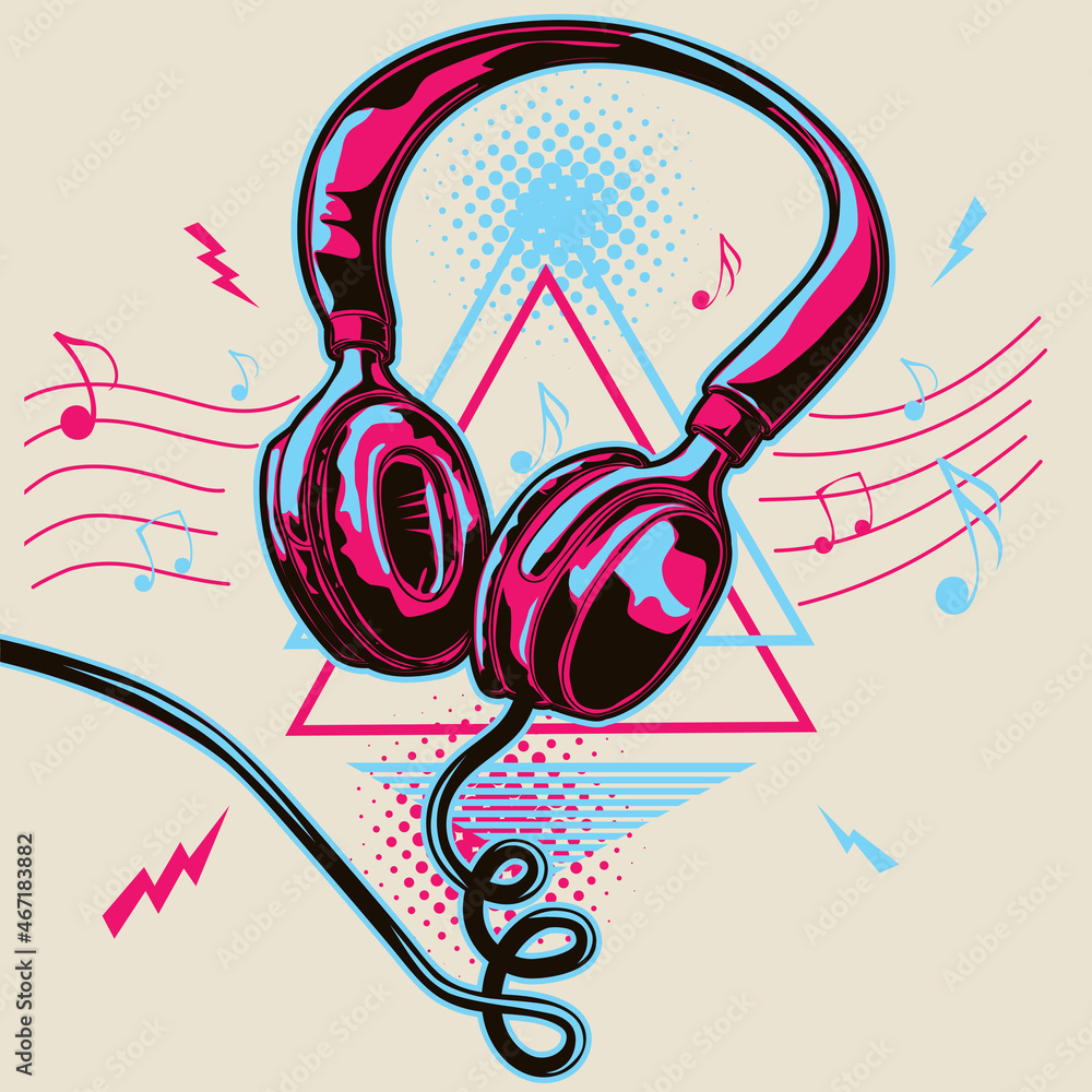 Fototapet Colorful musical headphones and notes - music design