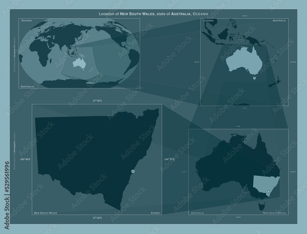 Fototapet New South Wales, Australia. Described location diagram