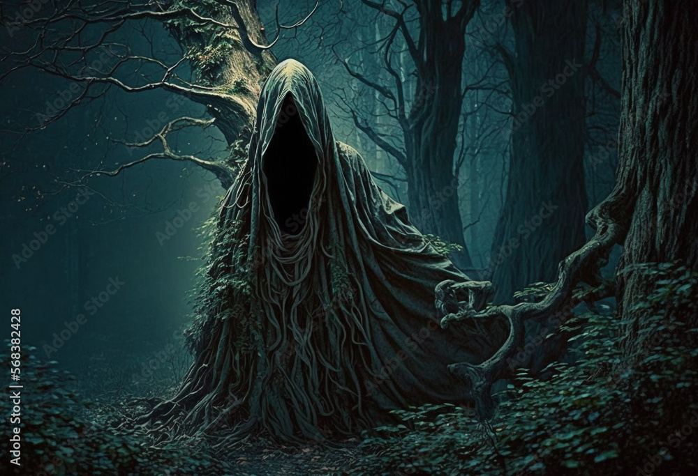 Fototapet A Chilling AI-Generated Render of a Supernatural Forest Haunting: A Menacing App