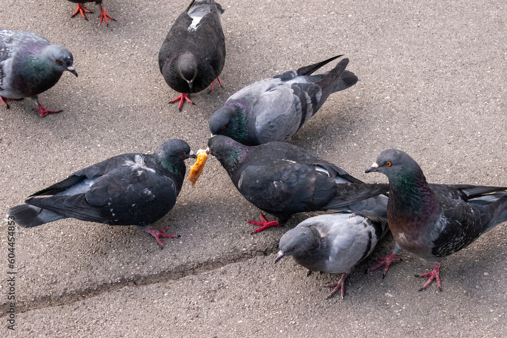 Fototapet feral pigeons, birds, and nature on the street in the city of vienna