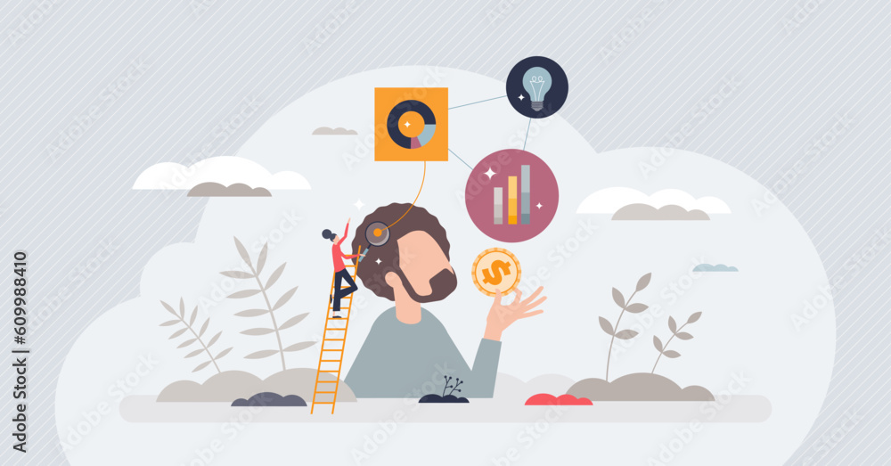 Fototapet Consumer behavior understanding to make effective ads tiny person concept