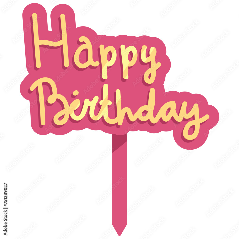 Tablou pe pânză Happy birthday cake toppers vector cartoon illustration isolated on a white background