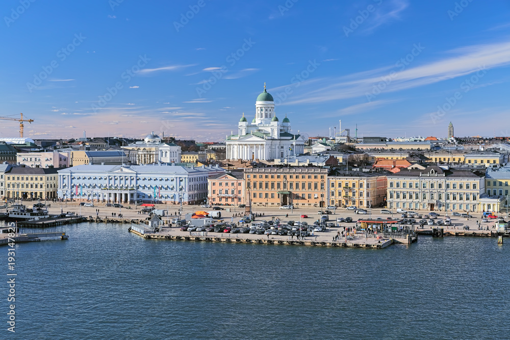 Fotografie Helsinki cityscape with Helsinki Cathedral, South Harbor and Market Square (Kaup