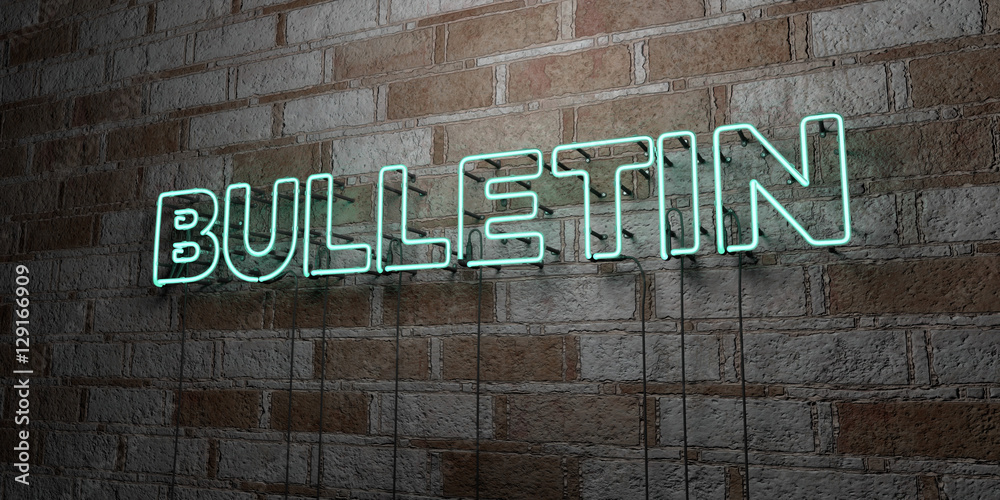Fotografie BULLETIN - Glowing Neon Sign on stonework wall - 3D rendered royalty free stock illustration