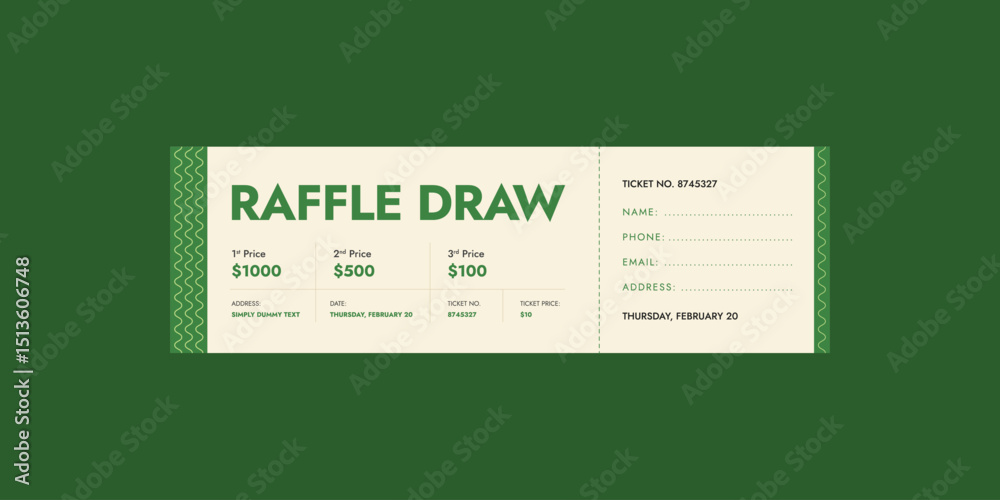 Fotografie Raffle ticket template, raffle draw ticket template, print ready, raffle ticket,