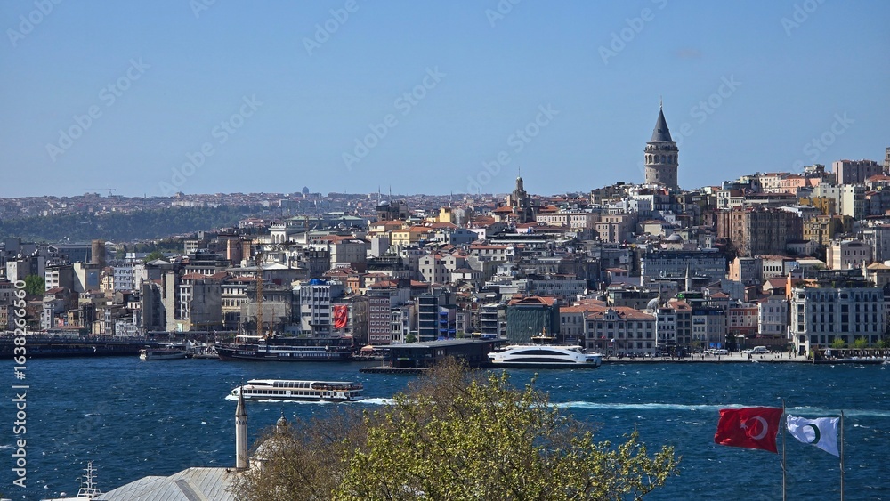 Fotografie Galata Tower and Istanbul Skyline with Bosphorus View