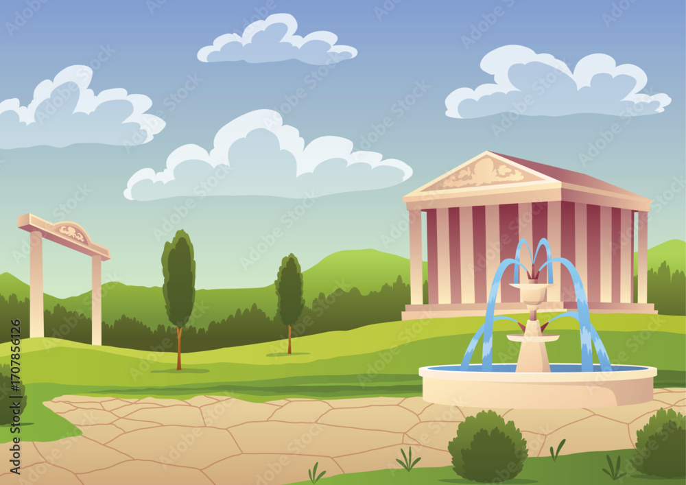 Fotografie Greek or roman temple building, ancient architecture with columns and pediment
