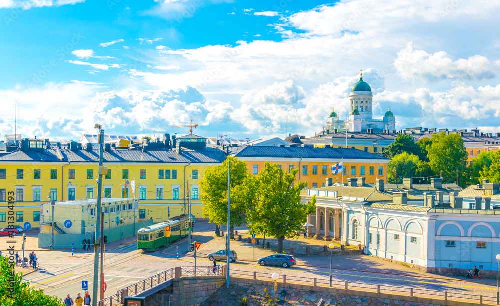 Fotografie Aerial view of Helsinki with the Helsinki cathedral rising above surrounding cityscape, Finland