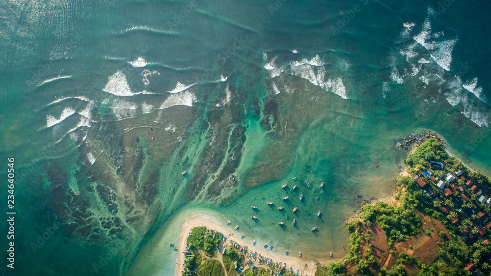 Fotografie Beautiful aerial view of tropical coastline and fisherman village