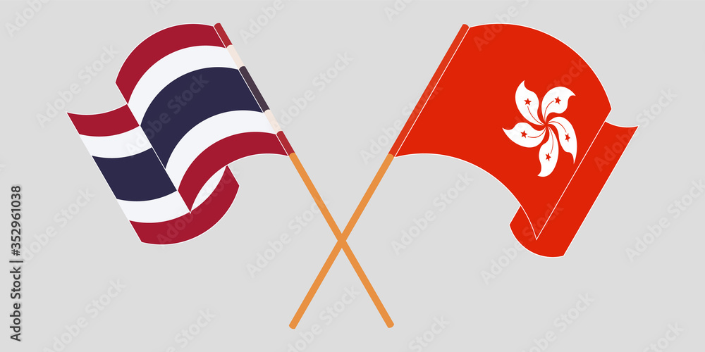 Fotografie Crossed and waving flags of Hong Kong and Thailand