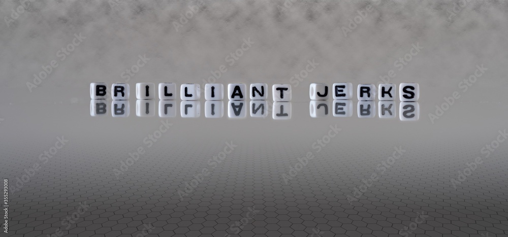 Fotografie brilliant jerks concept represented by black and white letter cubes on a grey ho