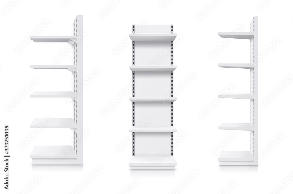 Fotografie Shelves, supermarket and store showcase, shop product display, vector realistic 3D mockup