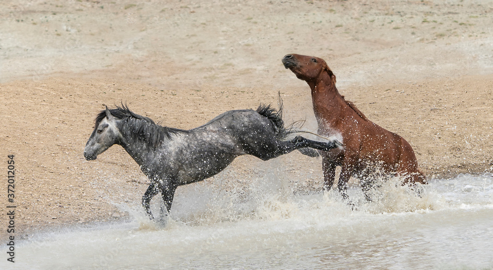 Fotografie Satellite Stallion Kickback - A satellite stallion will follow (and even protect) a family of wild horses