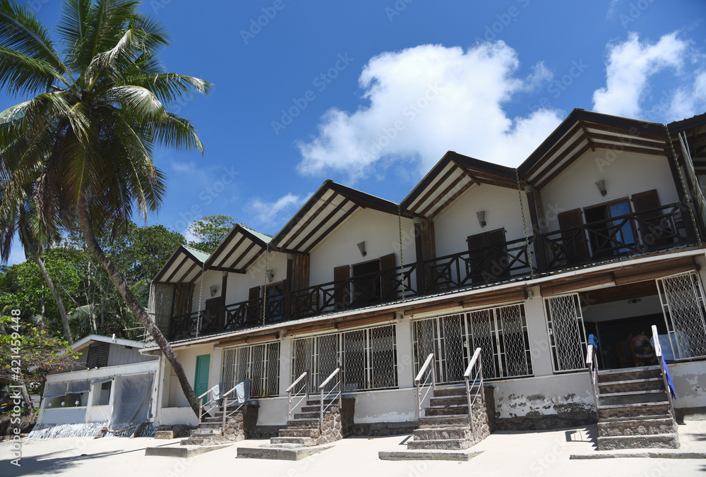 Fotografie Houses on tropical beach, tourism accommodation concept.