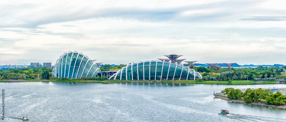 Fotografie panoramic landscape scenery of garden by the bay along waterfront in singapore