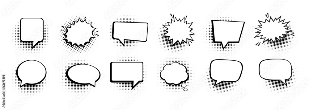 Fotografie Retro comic speech bubbles with black halftone shadows
