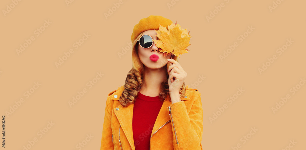 Fotografie Autumn color style outfit, portrait of stylish beautiful young woman model with