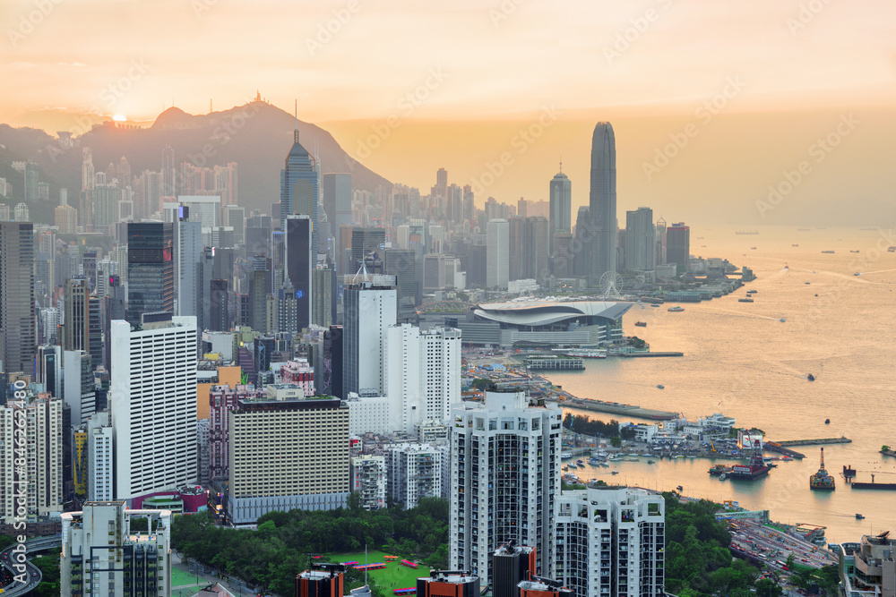 Fotografie Scenic view of the Hong Kong Island at sunset