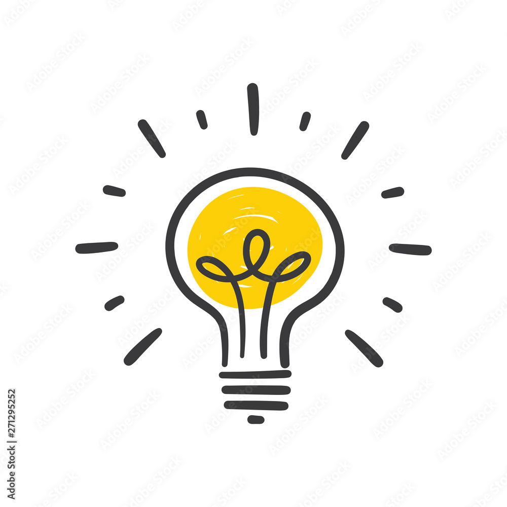 Fotografie Light bulb doodle, hand drawn idea icon.